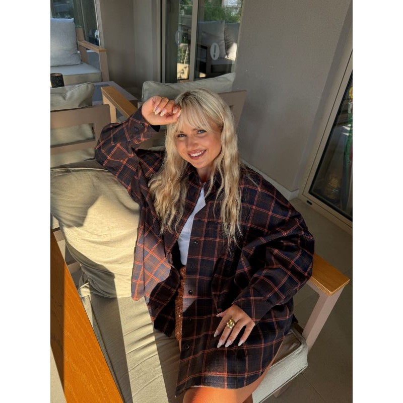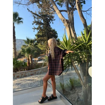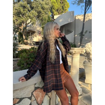 Koszula MINI Vintage Brown. Wykonany z 65% poliester, 32% wiskoza i 3% elastan. Polska produkcja. Modelka 150cm wzrostu. Rozmiar XS/S. Koszula odpowiednia dla osób o wzroście do maksymalnie 163cm.