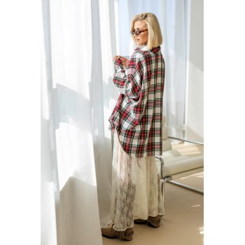 Koszula Vintage Brown. Wykonany z 65% poliester, 32% wiskoza i 3% elastan. Polska produkcja. Modelka 173cm wzrostu. Rozmiar uniwersalny.