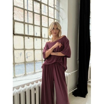 Bluzka bordo. Kolor bordowy. Wykonany z 65% modal i 35% poliester. Polska produkcja. Modelka ma 173cm i rozmiar XS/S.