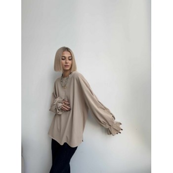 Koszula latte. Wykonany z 65% poliester, 32% wiskoza i 3% elastan. Polska produkcja. Modelka 173cm wzrostu. Rozmiar uniwersalny.