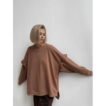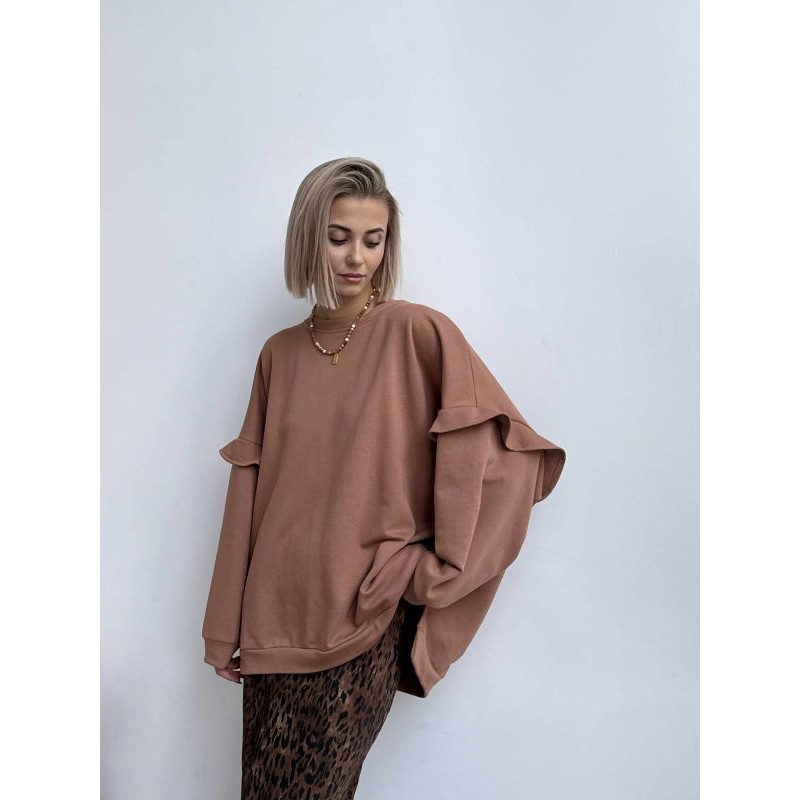 Bluza carmel. Kolor carmelowy . Wykonany z 80% bawełny i 20 % poliester. Haftowane logo. Polska produkcja. Modelka ma 173cm.