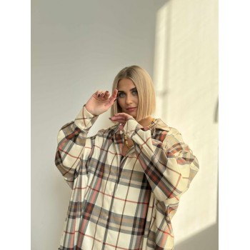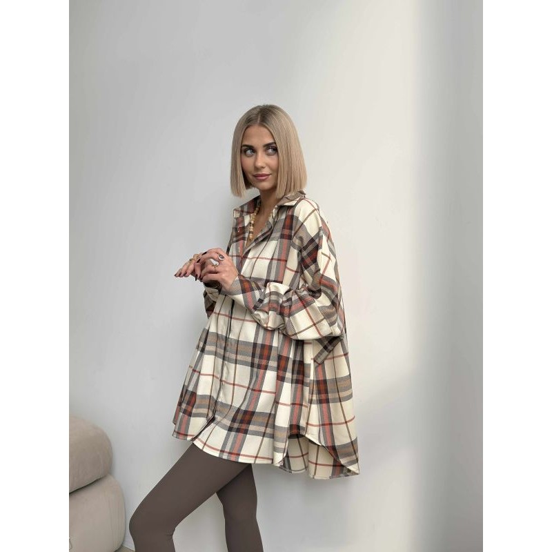 Koszula latte. Wykonany z 65% poliester, 32% wiskoza i 3% elastan . Polska produkcja. Modelka 173cm wzrostu. Rozmiar uniwersalny.