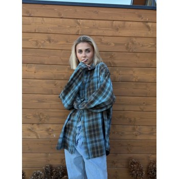 Koszula Vintage dark grey. Wykonany z 65% poliester, 32% wiskoza i 3% elastan. Polska produkcja. Modelka 173cm wzrostu. Rozmiar uniwersalny.