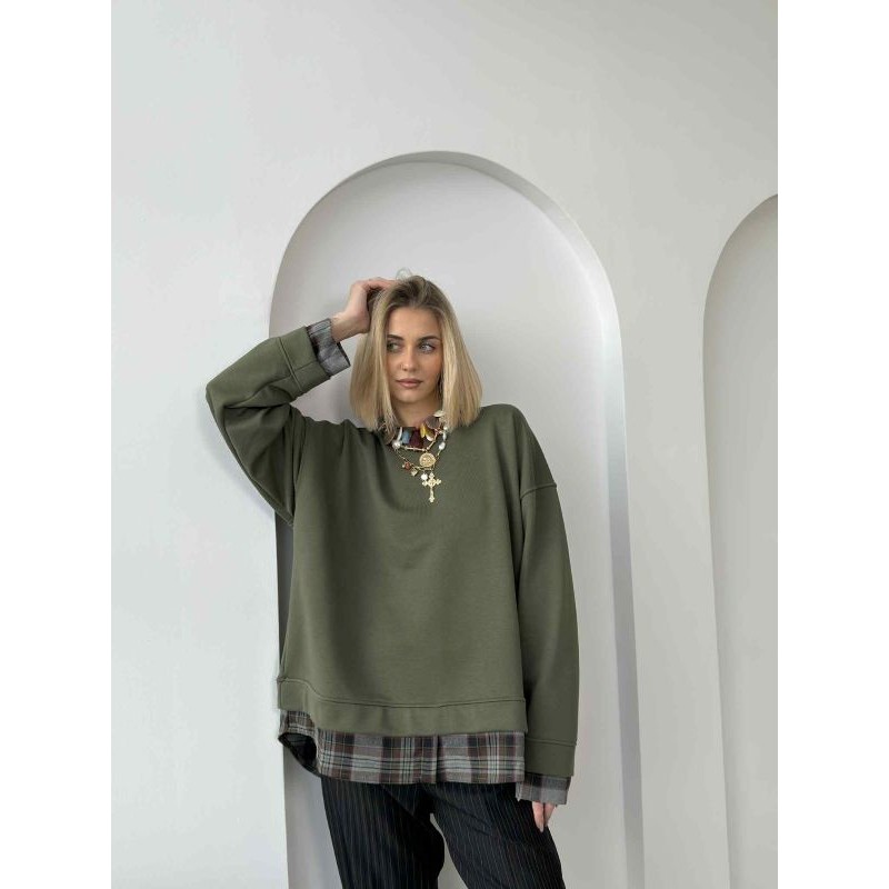 Stylowa bluza, która łączy komfort noszenia z ponadczasowym wzorem kraty. Starannie zaprojektowane kratowe detale nadają jej charakteru i wyróżniają ją na tle klasycznych modeli. Uniwersalny krój sprawia, że bluza świetnie komponuje się z jeansami, joggerami czy spódnicą, tworząc stylizacje casualowe i streetwearowe. Wykonana z 80% bawełna, 20% poliester. Elementy koszuli 65% poliester, 32% wiskoza, 3% elastan. Polska produkcja. Modelka ma 173cm wzrostu.
