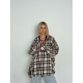 Stylowa koszula w ciepłej palecie beżu i brązu z nutą czerwieni